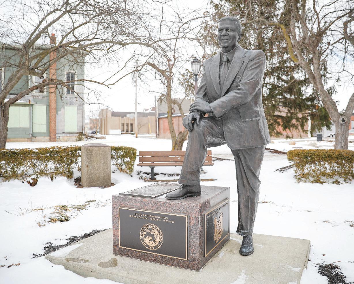 A statue of Hurley C. Goodall Jr. is photographed at Firemens Park Feb. 19 in Muncie, Ind. Goodall also served in the Indiana House of Representatives as a member of the Democratic Party from 1978 to 1992. ANDREW BERGER, DN