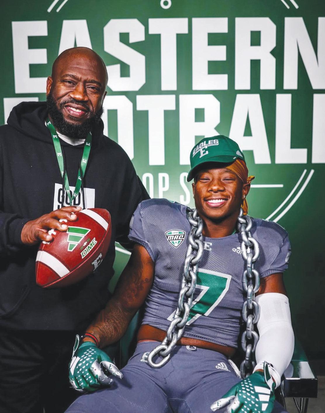Marlon Llewellyn poses with his son Bryce Llewellyn during the 2025 season at Eastern Michigan University. EASTERN MICHIGAN, PHOTO PROVIDED