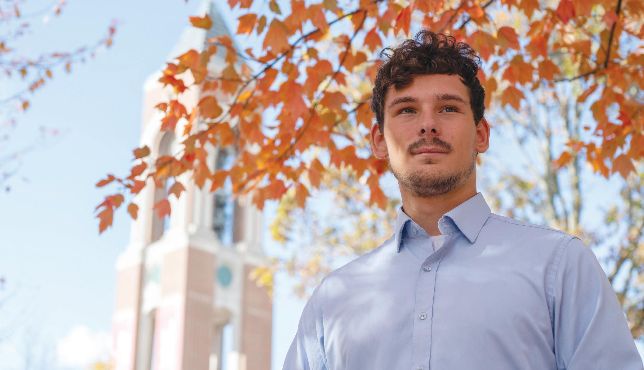 Jackson Franklin poses for a portrait Oct. 30 outside Bracken Library at Ball State University.