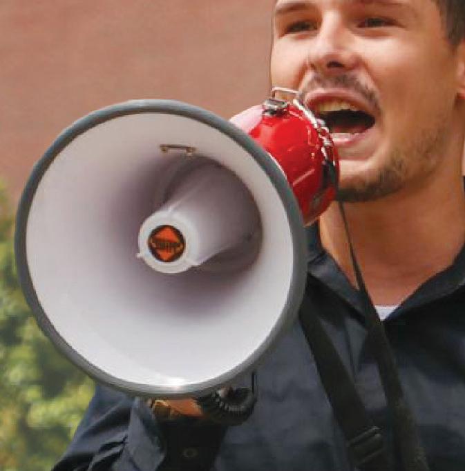 Democratic congressional candidate for Indiana’s 5th District, Jackson Franklin, speaks against the firing of Suzanne Swierc, the former Ball State director of health promotion and advocacy. ANDREW BERGER, DN