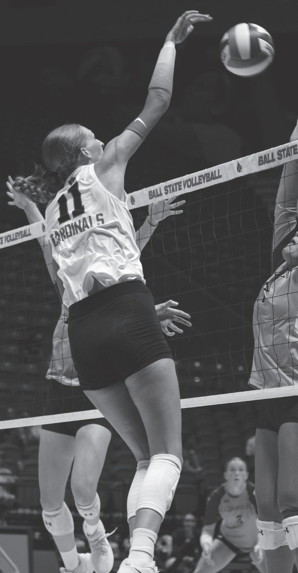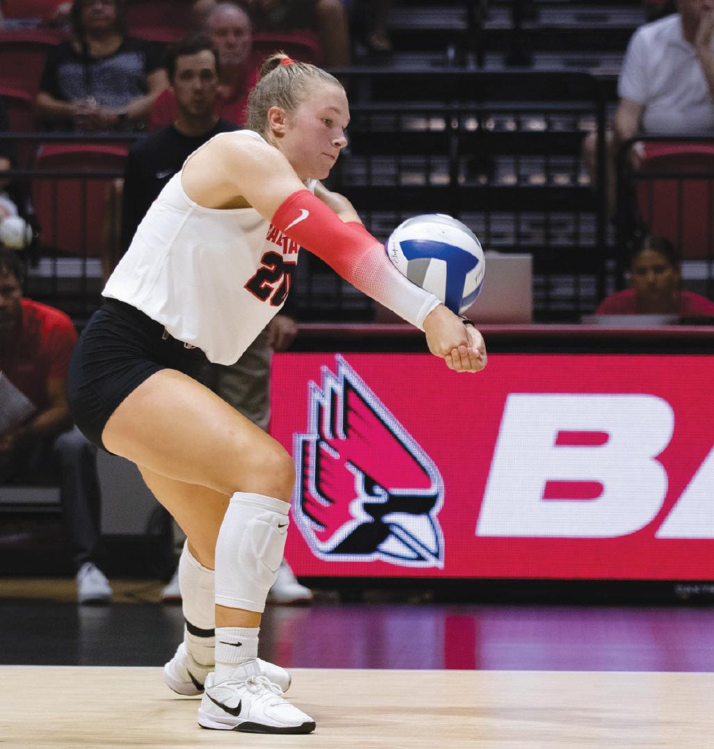 Tyler is the Cardinal’s most recent MAC Freshman of the Year, though she was crowned that award just a year ago in 2024. Tyler led all MAC freshmen in kills with a total of 211 and an average of 3.35 kills per set. Tyler recorded doubledigit kills in 14 out of 18 of Ball State’s conference matches, with her career high being 23 kills against Central Michigan.