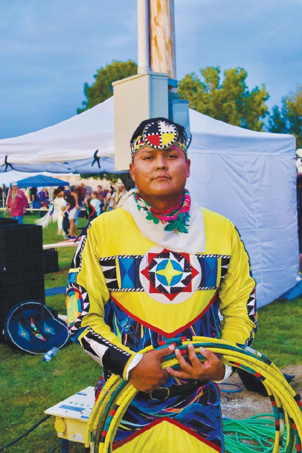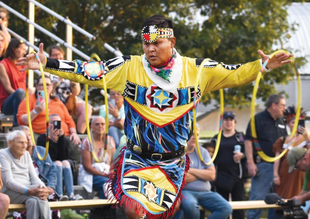 Joseph Secody poses for a photo after his performance during the Andersontown Powwow Sept. 9 at Beulah Park in Alexandria. Secody is ranked 6th in the world for his traditional hoop demonstration ANDREW BERGER, DN
