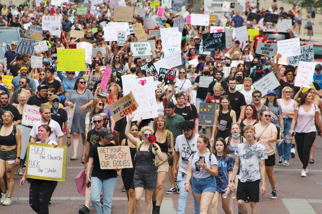 Indiana residents marched from the Statehouse towards downtown monument circle a day after Roe v. Wade was overturned by the Supreme Court in June 2022.
