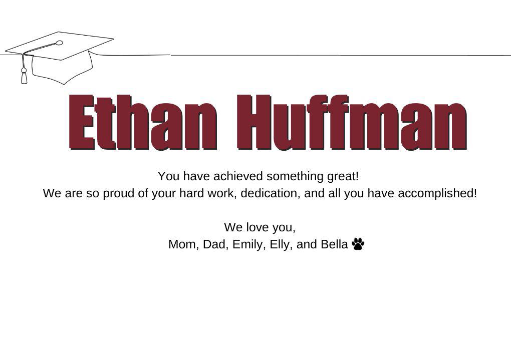 Congratulations on your graduation! We’re so proud of all your accomplishments and the incredible man you’ve become. As you start your next chapter, continue to dream big, work hard and remember - the sky’s the limit!