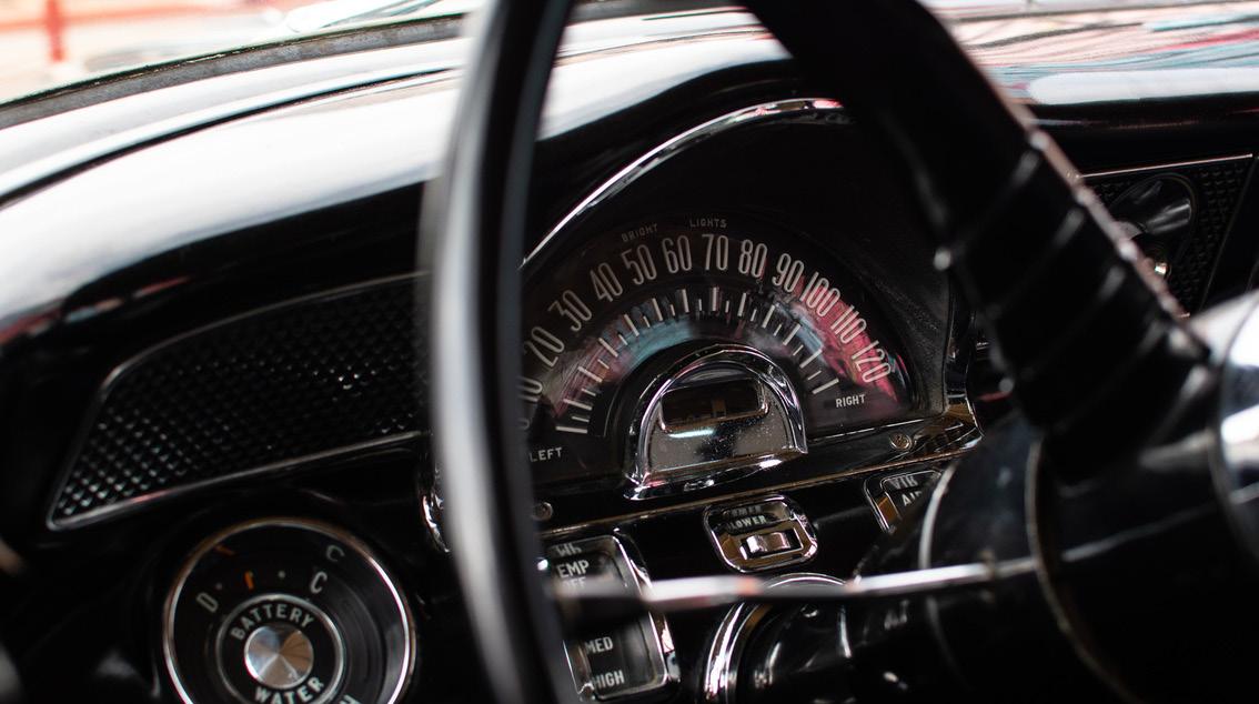 The dash on Maggie Mercer’s classic Pontiac is completely original, and she says the black will match any interior. “Thankfully, the interior is black. I loved that because I can do anything I want with this car,” Maggie says. Shannon McCloskey, Ball Bearings