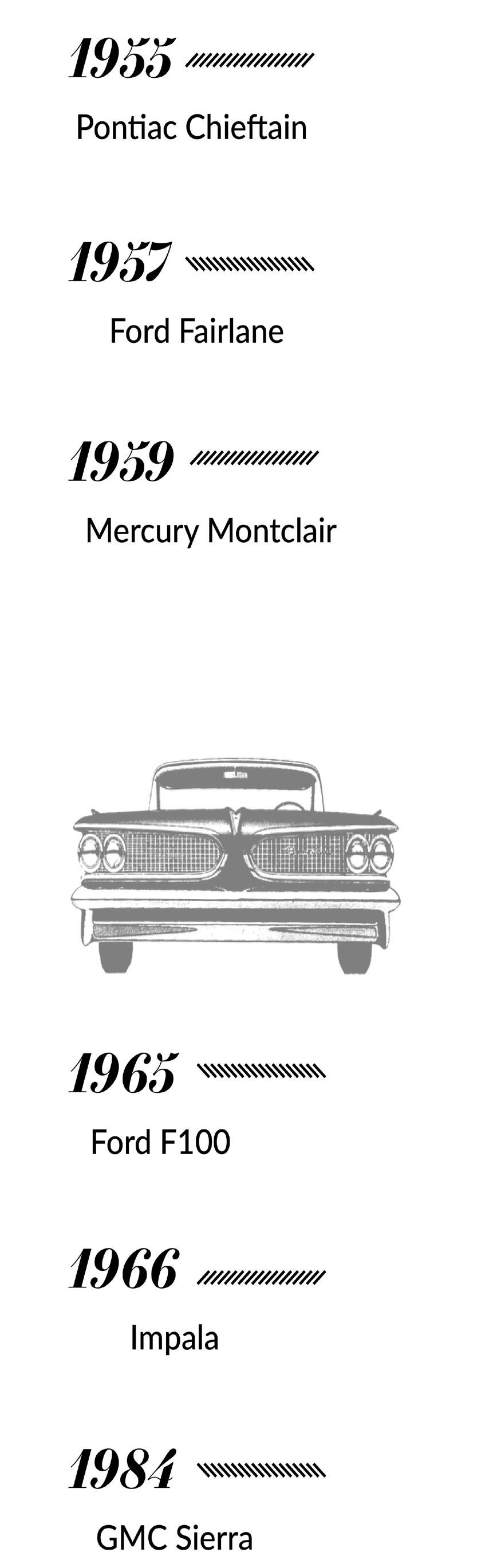 “When the Space Race began, they started really trying to put like space-age looking things into the designs of cars. So that’s why you’ll see some things that have a crazy bubble top, or they have those big tail lights that come out,” Maggie says.