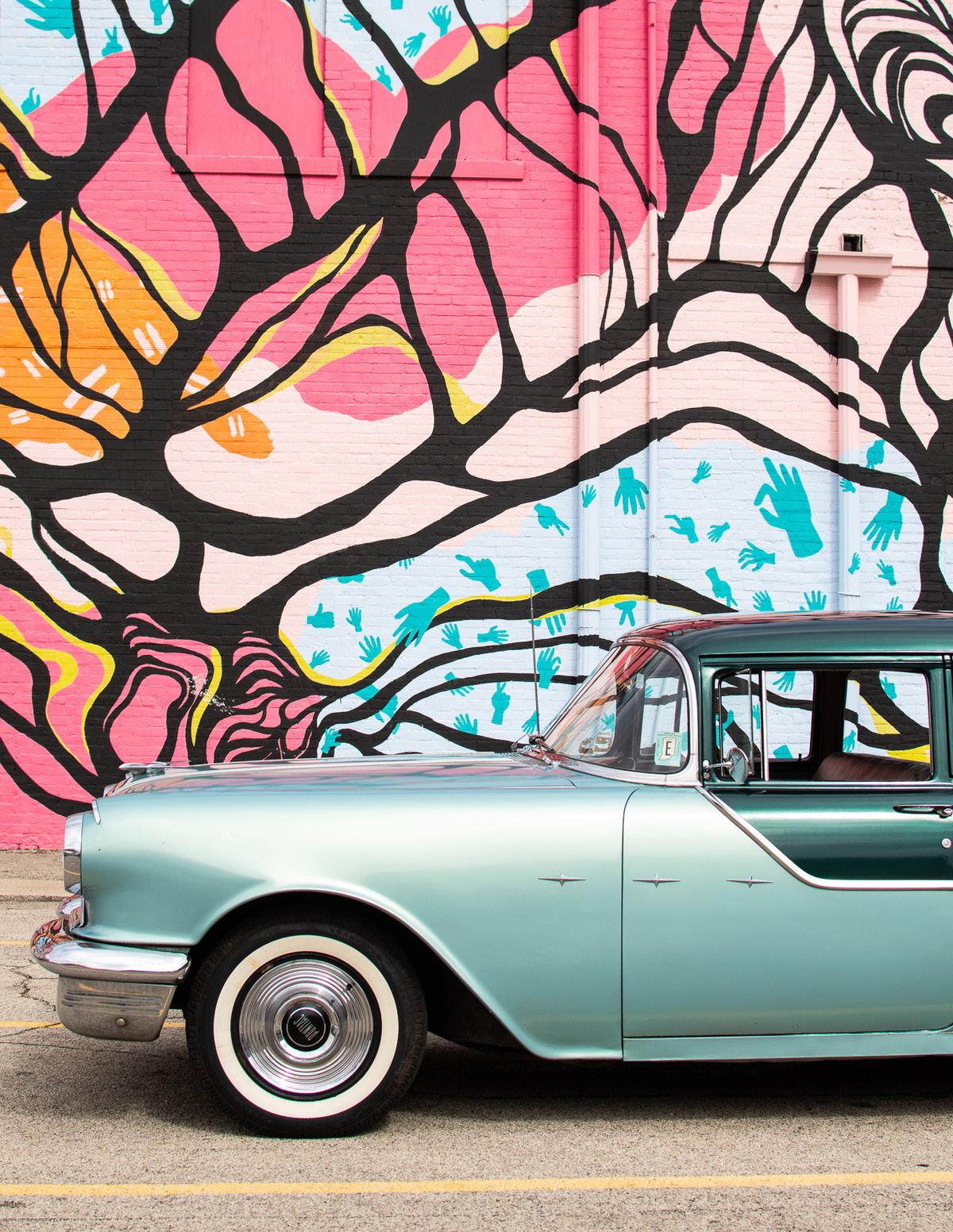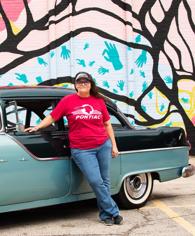 Maggie Mercer leans on her 1955 Pontiac in Muncie, Ind. She found her Pontiac on Facebook Marketplace and traded for her Volkswagen Beetle. Her family bought, sold, and traded for the 13 cars they own. Shannon McCloskey, Ball Bearings