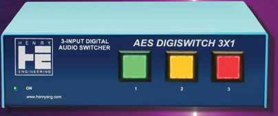 AES DigiSwitch 3X1 is a three-input switcher for AES digital audio signals. It accepts up to three AES audio sources, selecting one that is sent to the AES output.
