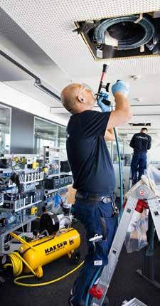Right: On site at KAESER’s Coburg facility – ventilation duct cleaning in action.