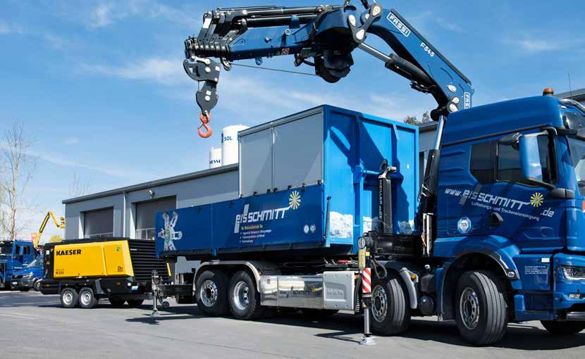 Left: The ‘Eisschmitt Truck’ transports the MOBILAIR compressor and all necessary dry ice blasting equipment.