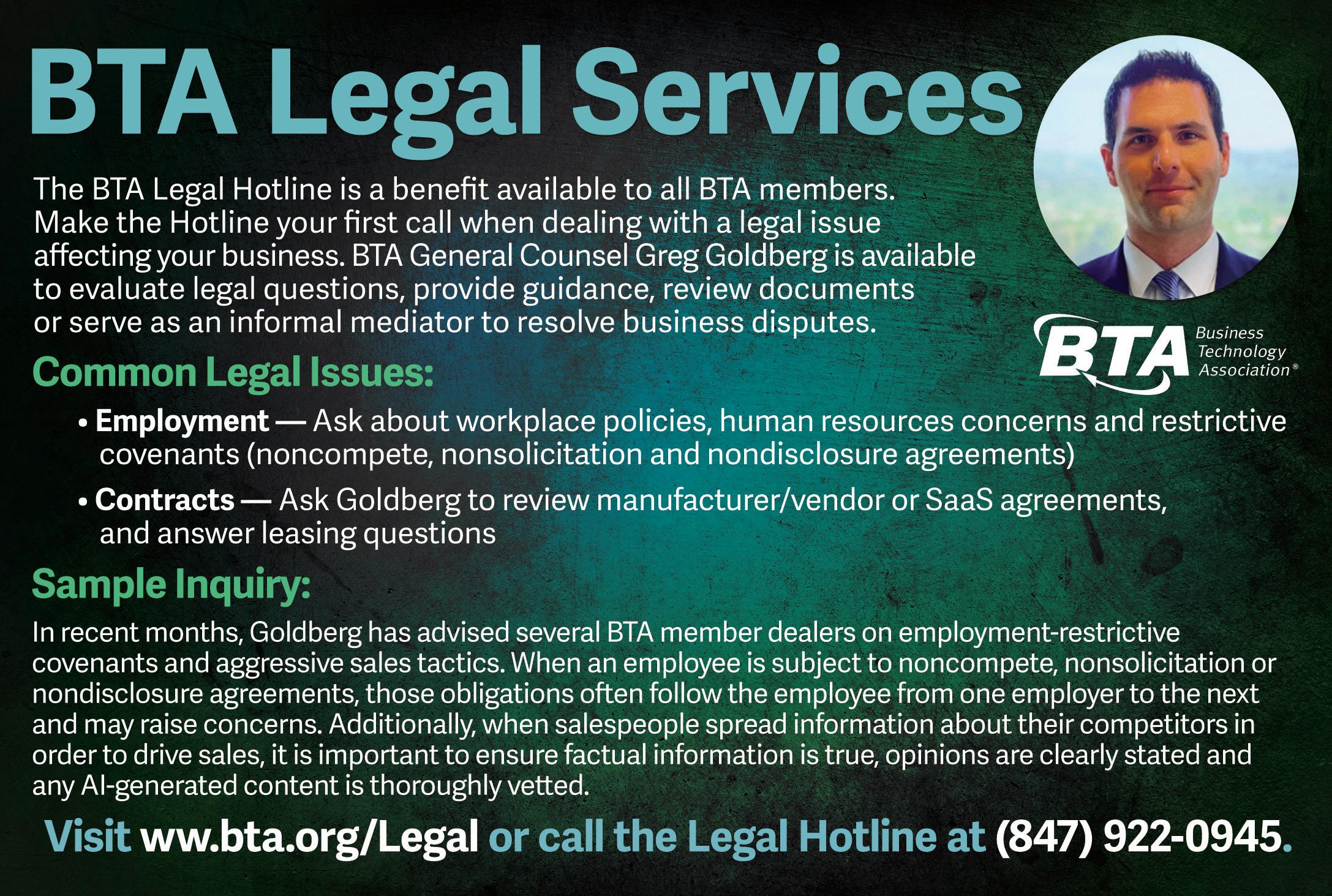 Greg Goldberg, partner at Barta | Goldberg, is general counsel for the Business Technology Association. He can be reached at ggoldberg@bartagoldberg.com or (847) 922-0945.