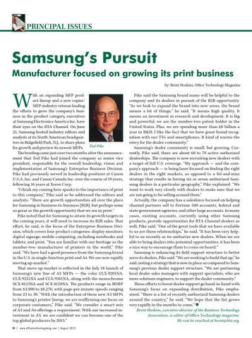 Samsung’s Pursuit Manufacturer focused on growing its print business by: Brent Hoskins, Office Technology Magazine