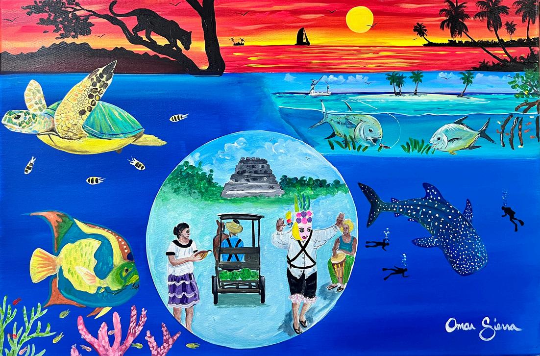 The Belize Tourism through Art Exhibition commemorates World Tourism Day, celebrated globally on September 27th. In celebration of World Tourism Day 2023, the Belize Tourism Board launched the Belize Tourism through Art Competition in August and invited artists to create captivating masterpieces reflecting the global theme for World Tourism Day: "Tourism and Green Investments." This theme called for investments in three key areas: people, planet, and prosperity. The competition was envisioned as an opportunity for artists to showcase Belize's cultural richness, breathtaking landscapes, and unwavering commitment to sustainability through the unique creativity, talent, and interpretation that art offers. Artists used various mediums, including oil, acrylic, and mixed media.