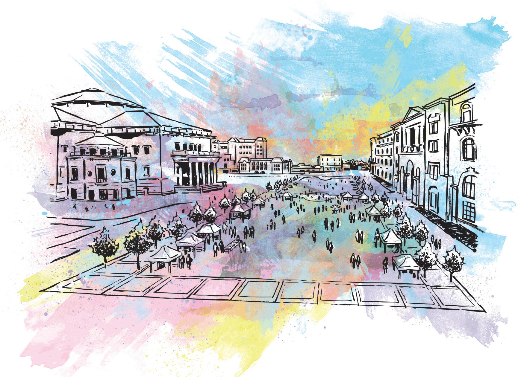 Located at the west entrance of the Palladium, off 3rd Avenue SW