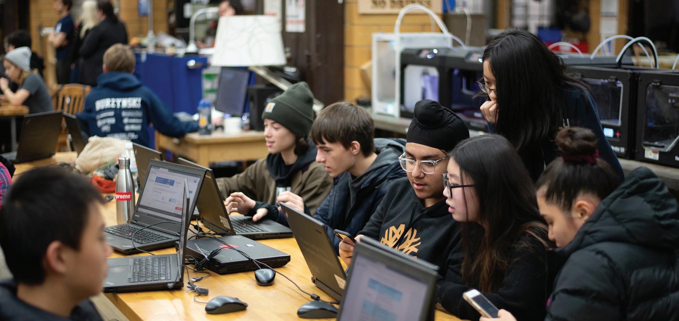 ROOM 1N3, A FORMER industrial-era shop now aglow in the bright light of 30 computers, students lean into their