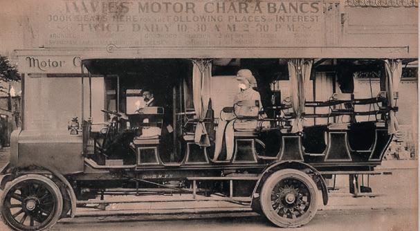 Another pioneer of public transport was Arthur Davies who also operated from West Street for a period from 1903. He also operated a regular service to Southampton and along the coast to Brighton. One of his most profitable routes was from Chichester to Portsmouth, which cost 5s.0d. It is believed that he was the first recorded local council operated regular bus service in the area. His cars were known locally as the “Lady Cars” and were a regular sight standing outside the Pier. He was a great family man and numerous early pictures showed him with his wife and beloved daughter – Florence. Tragically she died at the age of 13 and as a result of this and his ill health he sold his thriving business in 1915 to a new company – Southdown.
