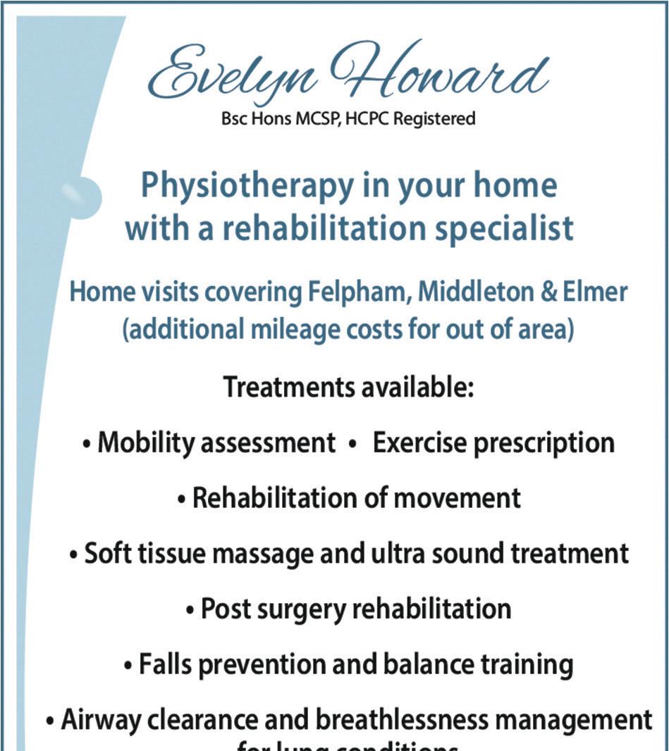 All advertisements are printed in good faith, however Felpham in Focus cannot take responsibility for the content of the adverts or the services provided by the advertisers. Opinions and views expressed in articles are not necessarily held by In Focus Magazines. No part of the publication may be reproduced or stored without the express permission of the publisher.