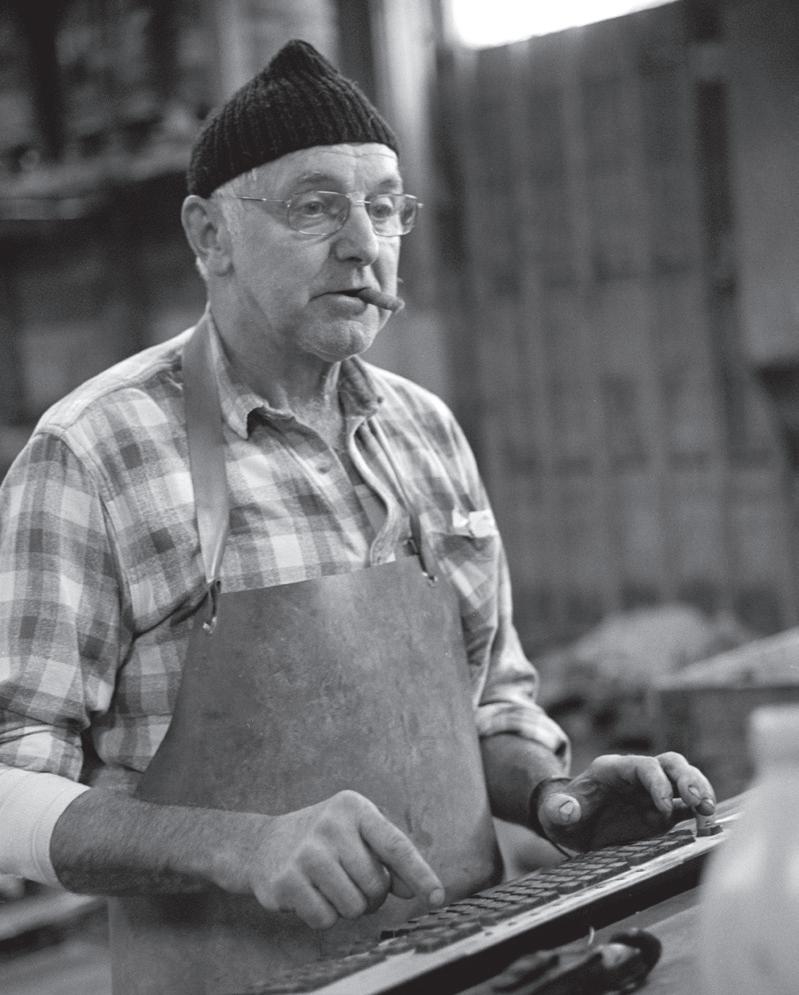 Mit einem stachelbewehrten Hammer stanzen sie die Kennzahl daraufhin in das Fell ein. Am Ende des Veredelungsprozesses wird es anhand der Stanzung identifiziert.