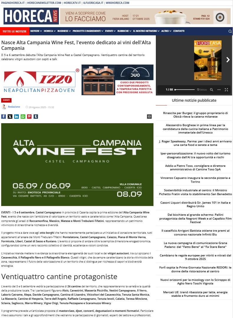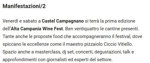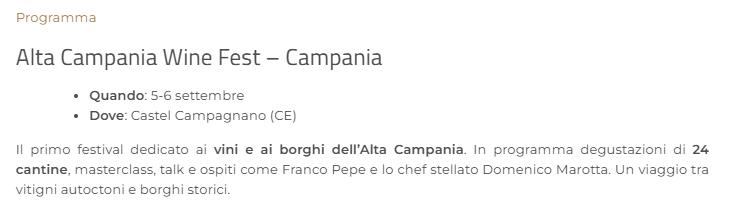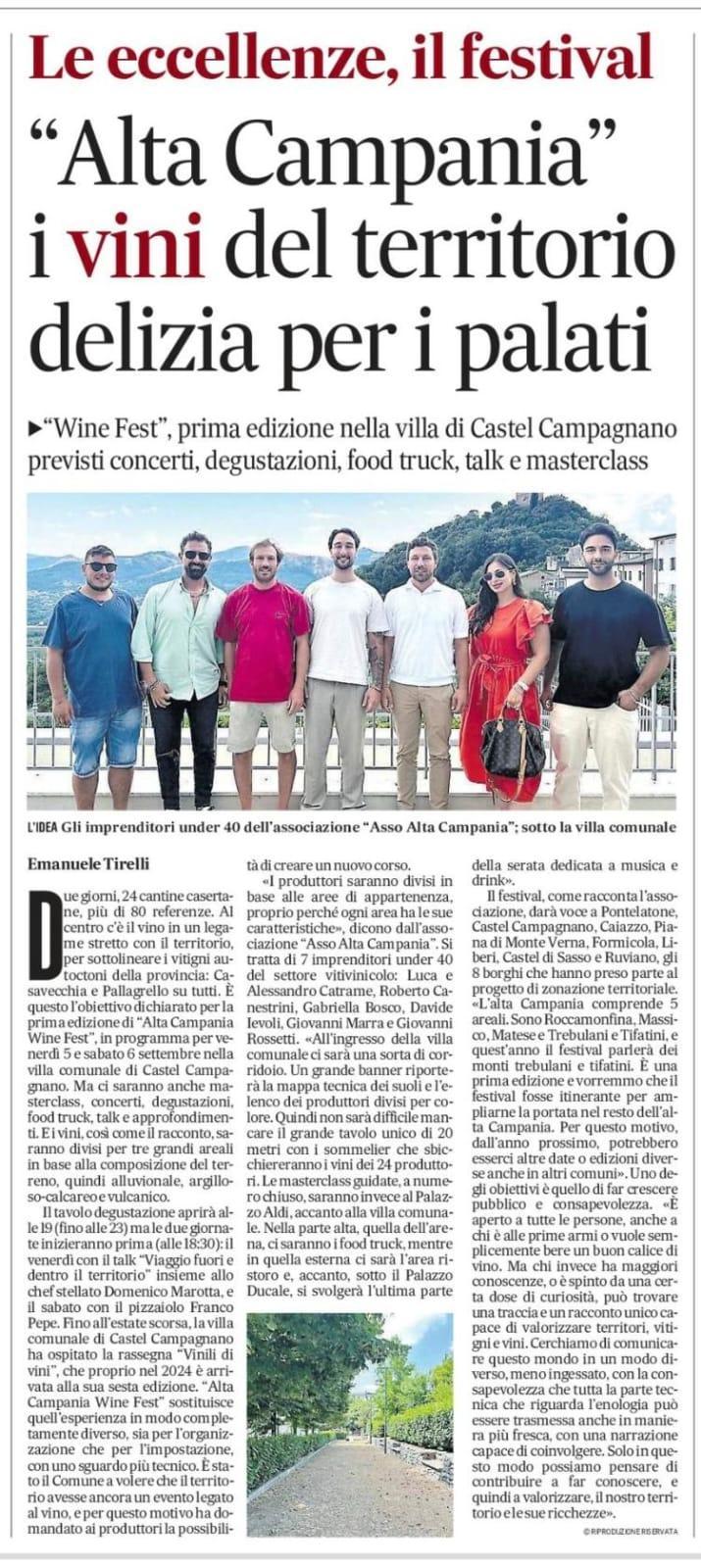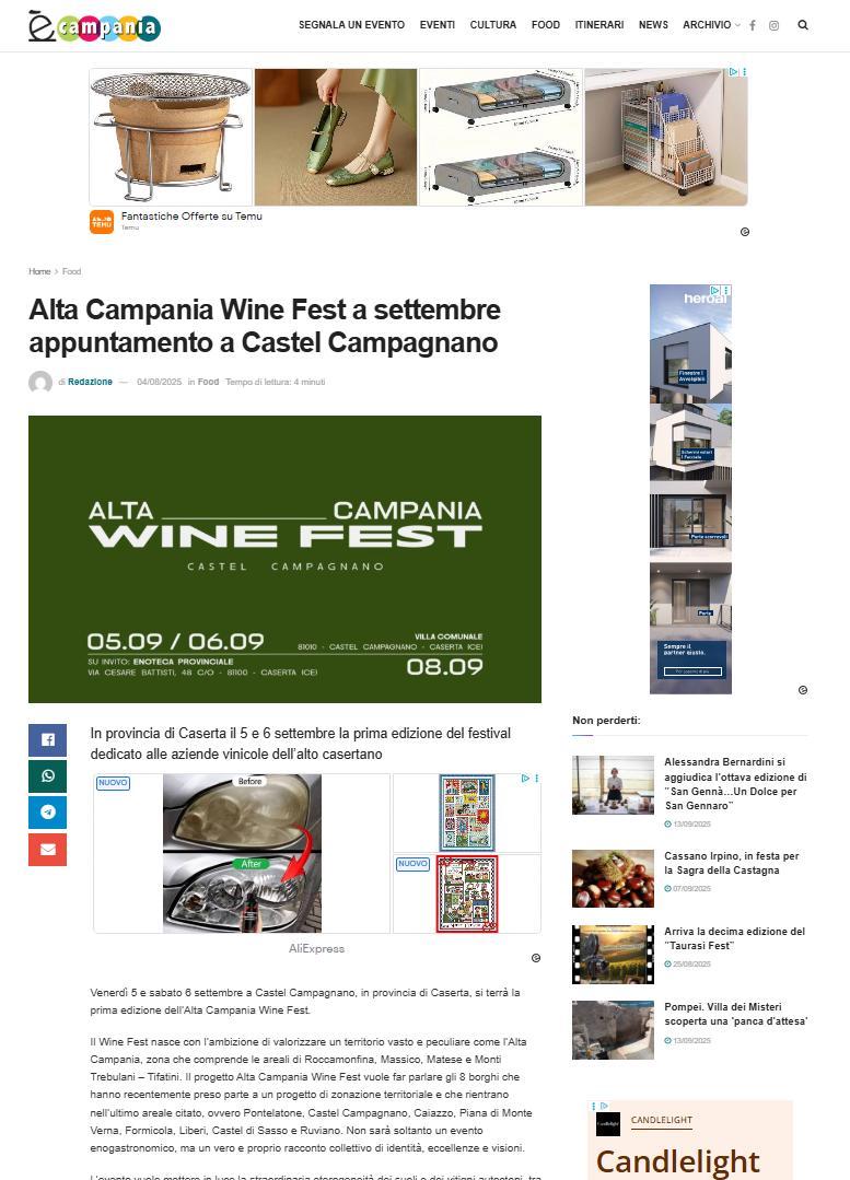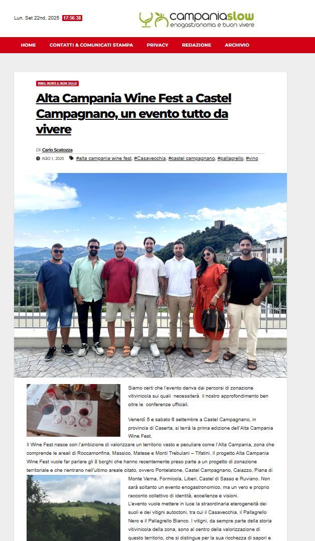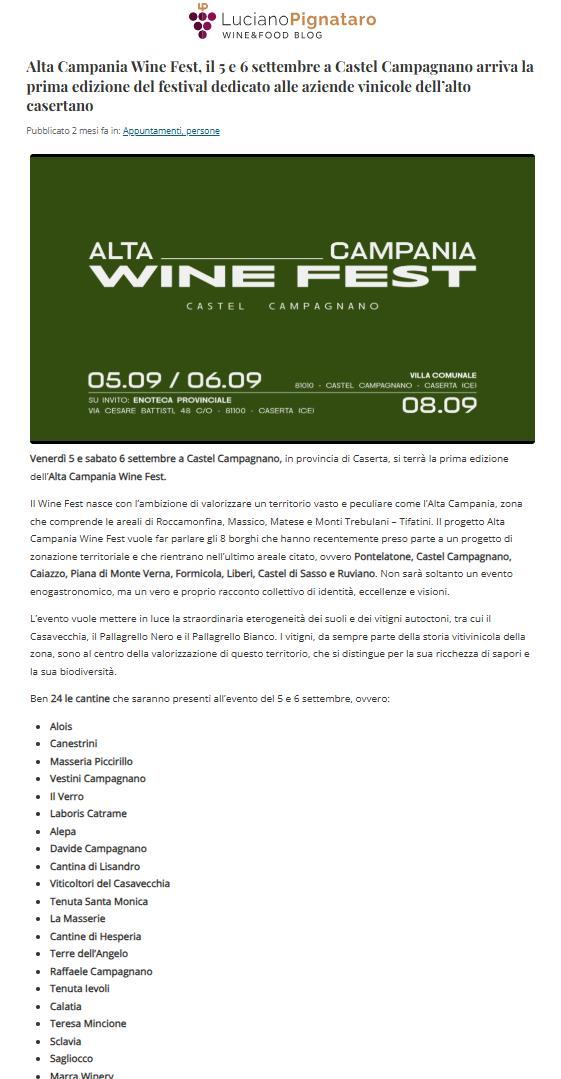 Le interviste, gli articoli, gli speciali e gli approfondimenti sulla prima edizione di Alta Campania Wine Fest, il festival interamente dedicato ai vini dell'Alto Casertano, ovvero il Pallagrello Nero, Pallagrello Bianco ed il Casavecchia.