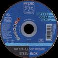 Cut-off wheel for steel and stainless steel (INOX) with high cutting performance and very long tool life.