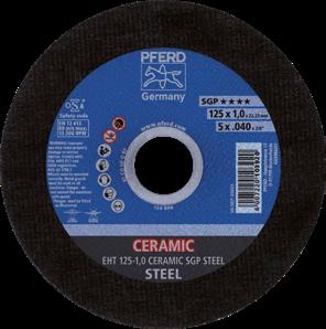 Special cut-off wheel with ceramic oxide grain for steel with ultimate cutting perfor mance and outstanding tool life. Optimized for use on steel workpieces with larger cross sections.