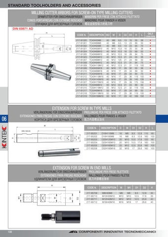 SPANFUTTER FÜR EINSCHRAUBFRÄSER MANDRINI PER FRESE CON ATTACCO FILETTATO CONOS PORTAFRESAS CON EXTREMO ROSCADO MANDRINS POUR FRAISER A VISSER ОПРАВКИ ДЛЯ ФРЕЗЕРНЫХ ГОЛОВОК 螺纹连接型铣刀的铣刀杆 DIN 69871 AD CODE N.