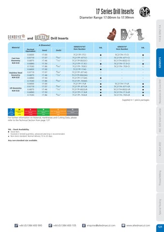 For further information on Material, Hardnesses and Cutting Data, please <1365 refer to the Technical Section from page 137.