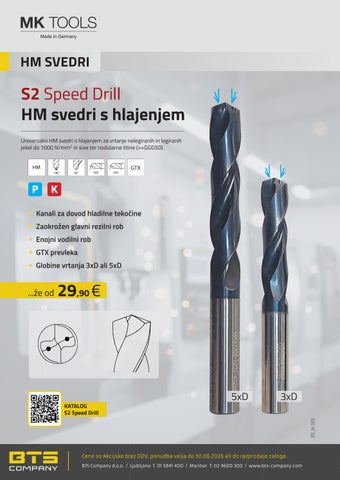 Univerzalni HM svedri s hlajenjem za vrtanje nelegiranih in legiranih jekel do 1000 N/mm2 in sive ter nodularne litine (>=GGG50).
