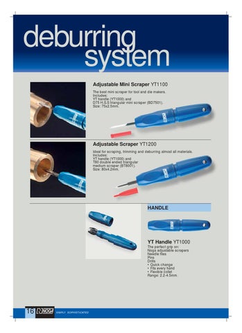 deburring system Adjustable Mini Scraper YT1100 The best mini scraper for tool and die makers. Includes: YT handle (YT1000) and D75 H.S.S triangular mini scraper (BD7501). Size: 75x2.5mm.