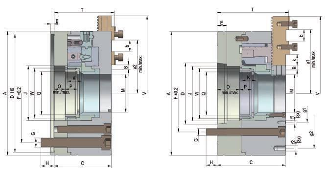Max. Speeds 8000 - 4500 m-1 5000 - 3200 m-1 Installation position horizontal, vertical horizontal, vertical Feature prepared for media feed-through media feed-through on request Workpiece Page 6156 6160 hydraulical actuated pneumatically actuated Operation guide Power chucks, cylinders and steady rests