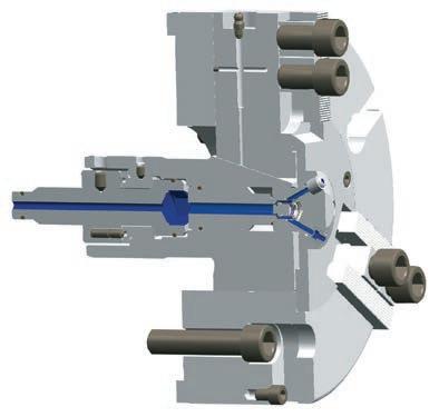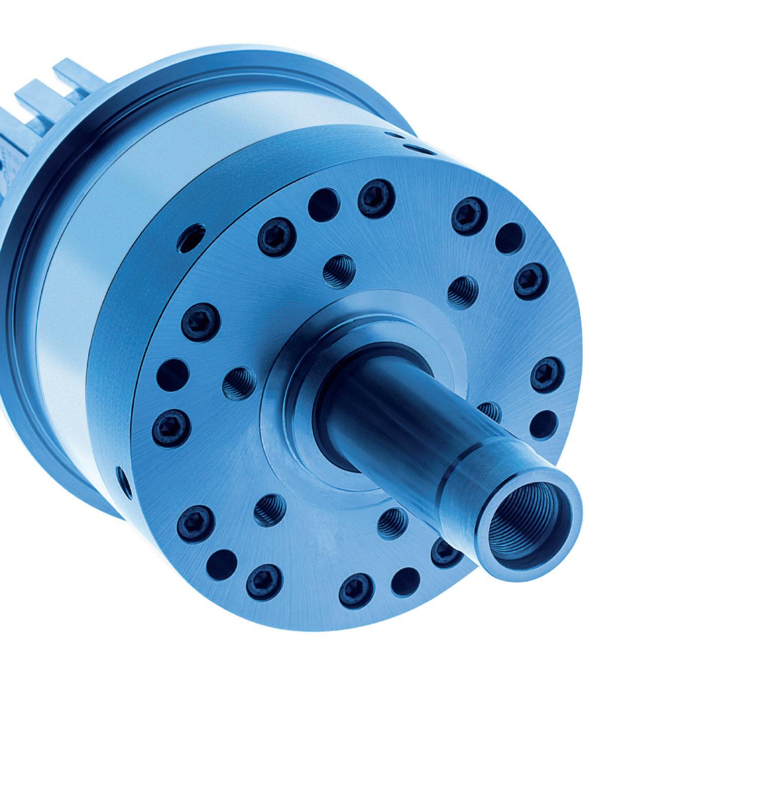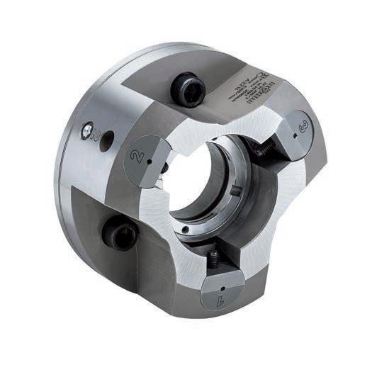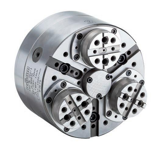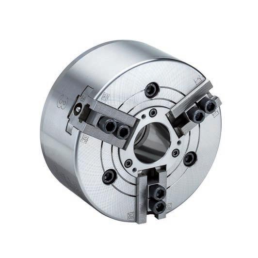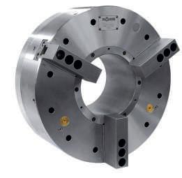 Large through-hole optimal for bar machining Proven power chucks with long service life Wedge hook system for high load capacity and clamping precision