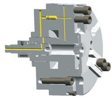 RÖHM power chucks with through-hole are successfully used both in bar and pipe machining, as well as in the machining of flange-type workpieces. The proven wedge system allows maximum clamping forces with maximum clamping precision at the same time. The rigidity of the power chucks which contributes to this is achieved with a sturdy chuck construction.
