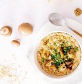 BAYREUTH. Gerade jetzt,wo es wieder kälter wirdund es morgens häufignoch dunkel ist, istein wärmendes Frühstück umsowichtiger.Warmer Haferbrei, bei der jüngeren Generation auch gerne aus dem Englischen Porridge genannt, hatin den letzten Jahren immer mehr an Beliebheit gewonnen. Beliebtist die süßeVariante mit frischem Obst, getopptmit ein paar Nüssen, Kernen oder Saaten. Vielleichtdarf auch noch ein KlecksMus auf den warmen Brei. Doch Porridge kann man auch herzhaft zubereiten und als AlternativezuEiern, Speck und Käsebrötchen genießen. Wie wäre es denn mal mit einem herzhaften Porridge mit Champignons und Erbsen, welches sich auch gut als warmes Mit tag- oder Abendessen zubereitenlässt?