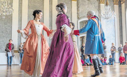 Höfisches Treiben im Festsaal des Neuen Schlosses: Tanzvorführungen und Standkonzerte versetzendie Gästezurück in die Zeit des Barock –imBild: Mitglieder der Historischen Darstellergruppe Oberfranken e.V.