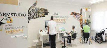 Hier bieten wir modernsterobotik-und computergestützte Therapiegeräte, an denen eine Vielzahl vonÜbungen, insbesonderezur Therapie vonFinger,Hand,Arm und Schulter absolvieren.