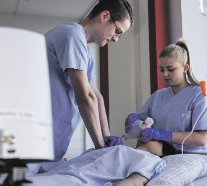 Einfachgesagt:Lernendurchselbst erarbeiteteProblemlösungen–und Fehler.Geradedasistetwas,wasin derPflegenurseltenmöglichist,sagt JensGroß:„DiepraktischeAusbildung unsererSchülerinnenundSchülerfindetdirektamMenschenstatt.Hierist esschwer,Fehlerzuzulassen,inden meistenFällensogarunmöglich.“