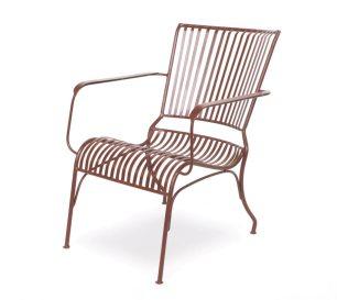 7 Eisenstuhl ‘Bauvoir’ ausladende Formen und kunstvolle Rundungen, Lackierung in gedecktem Rot,von Hand aus Eisengeschmiedetund gebogen, H77cm, B70cm, T61 €169,– Art. 168715
