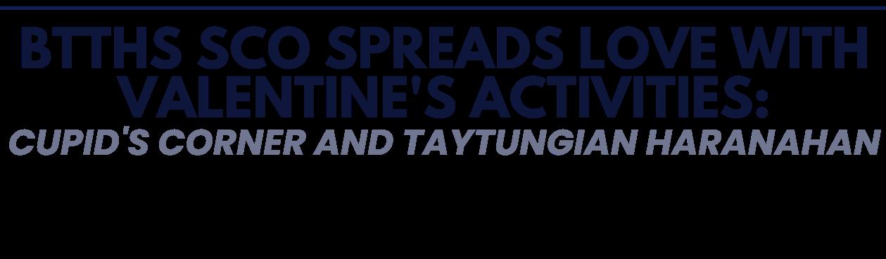 The BTTHS Student Council Organization, together with the Grade 12 batch council and the Armonia Music Club, held Valentine’s activities to spread the warmth of love on the school campus during the month dedicated to honoring St. Valentine.
