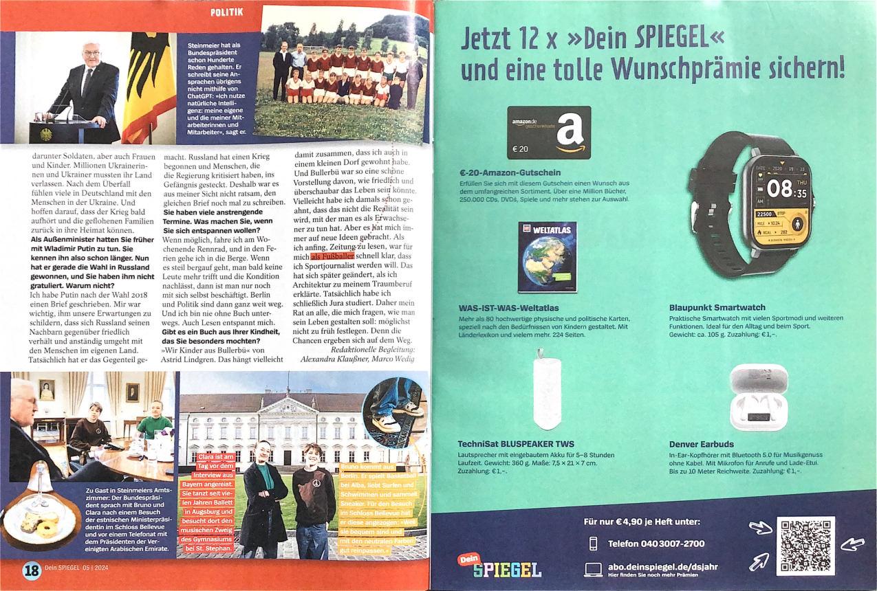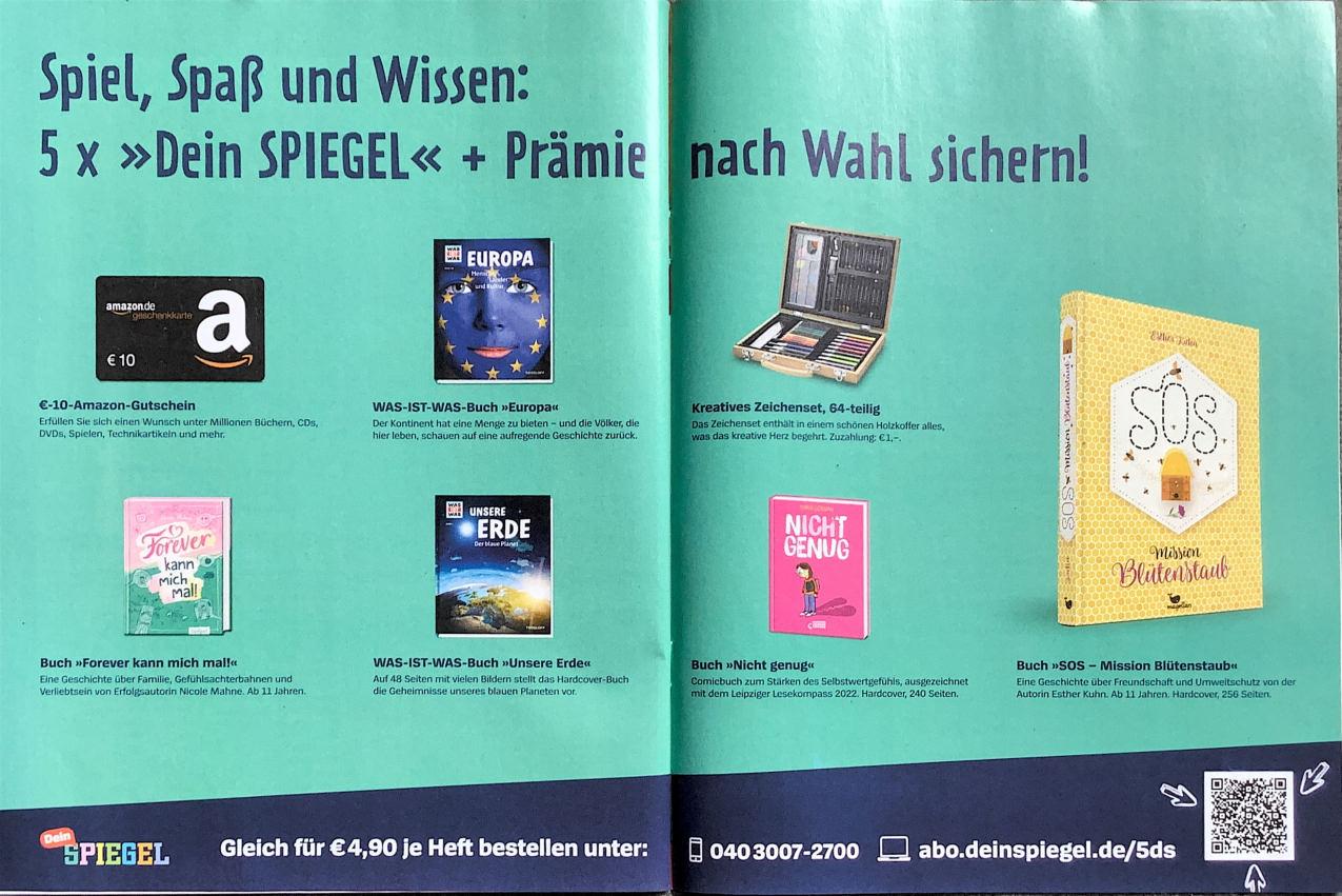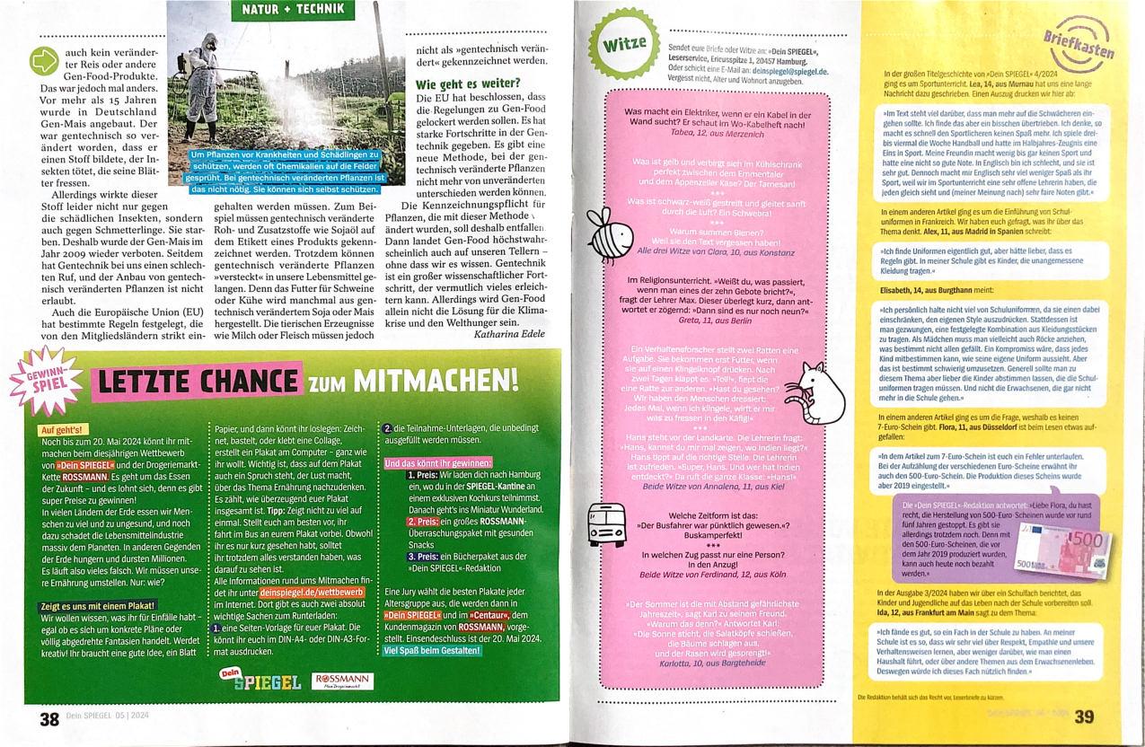 Doch bis zum 20. Mai 2024 könntihr mit-: net, bastelt, oder klebt eine Collage, ausgefüllt werden müss achen beim diesjährigen Wettbewerb: erstelt ein Plakat am Computer - ganz wie »Dein SPIEGEL«und der Drogeriemarkt- : ihr wollt. Wichtig ist, dass auf dem Plakat:Und das könnt ihr gev 1. Preis: Wirladen dich nach Hamburg tte ROsSMANN. Es geht um das Essen ein Spruch steht, der Lust macht, der Zukunft - und es lohnt sich, denn es gibt : über das Thema Ernährung nac oin Mn du in de :Es zählt, wie überzeugend euer Plak ll u/o 0 Preise zu gewinnen! In vielen Ländern der Erde essen wir Men-: insgesamt ist. Tipp: Zeigt nicht zu viel auf naaa aa d h inealeldI|0|0 a schen zu viel und zu ungesund, und noch: einmal. Stellt euch am beste tr ▇ ▇ Überraschungspaket mit gesi : fahrt im Bus an euremPlakdl VUIuCl, WU ▇ 500 massiv dem Planeten. In anderen Gegenden : ihr es nur kurz gesehen habt 3. Preis; ei gern und dursten Millionen.:ihr tr Dein SPEGEL-RedaktiOn nformationen rund ums MitMacnenI- pährung umstellen. Nur. wie : det ihr unter deinspiegel.de/wettbewerb: Eine Jury wählt die besten Plakate jeder 0 u6 et. Dort gibt es auch zwei abSolut: AIterSgruppe duS, ue welueI ualm n er Sommer ist die mit Abstand gefäh Zeigt es uns mit einem Plakatl en wissen, was ihr für Einfälle habt -: wichtige Sachen zum Runterladen Dein SPIEGELo undim »Centaurw, d lt ▇ ▇ ▇ lcdt, U ▇ o0 la e4IVU|AU )nV egal ob es sich um konkre völlig abgedrehte Fantasien handelt. Werdet : könntihr euch im DIN-A4- oder DIN-A3-For- : stellt. Einsendeschluss ist der 20. Mai 2024. braucht eine guteIdee, ein Blatt: mat ausdrucken.