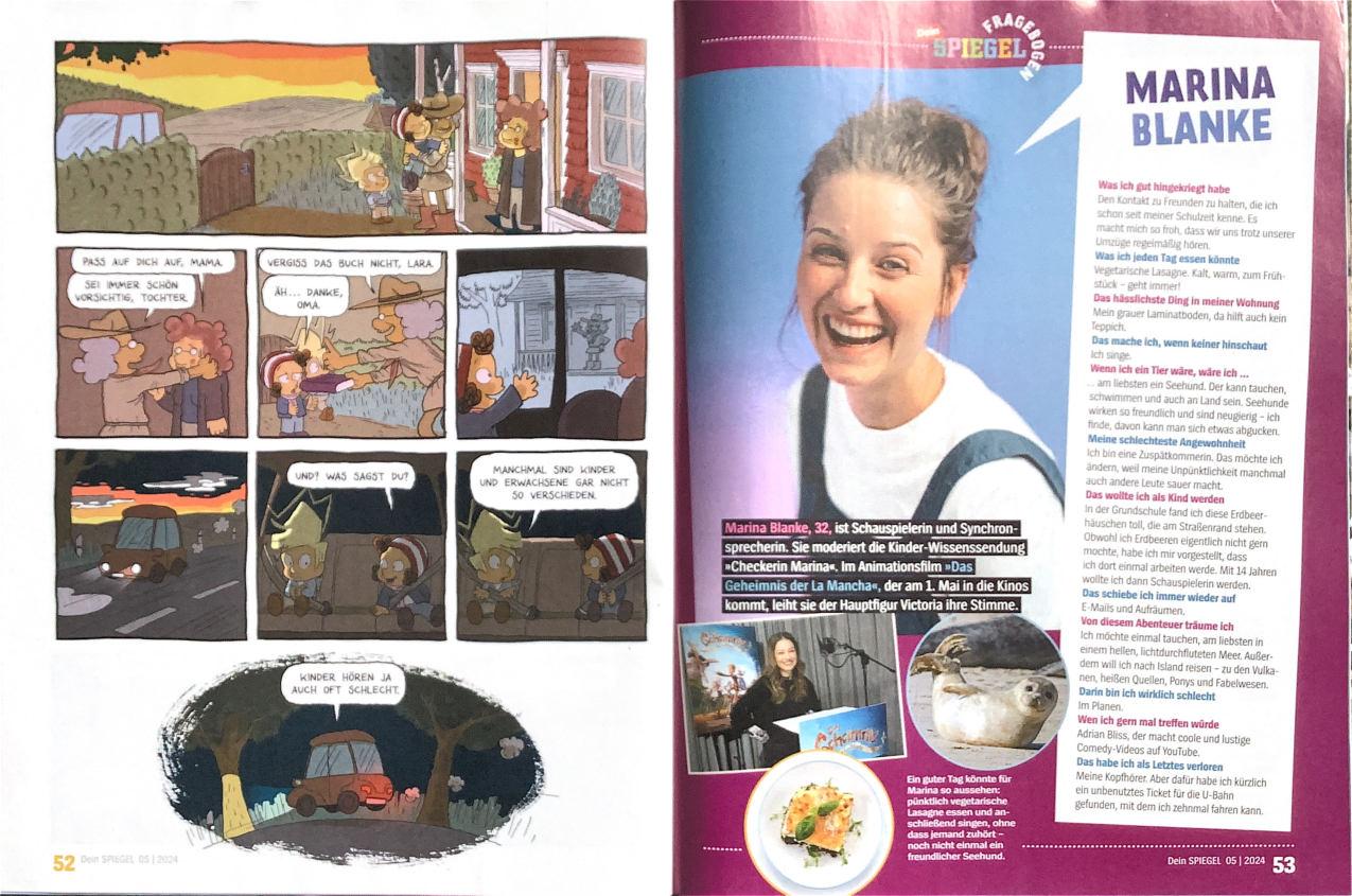 "Checkerin Marinan, Im Animationsfilm »Das Geheimnis der La Mancha«, der am 1. Mai in die kommt, leiht sie der Hauptfigur Victoria ihre Stimme. diesem Abenteuer träume
