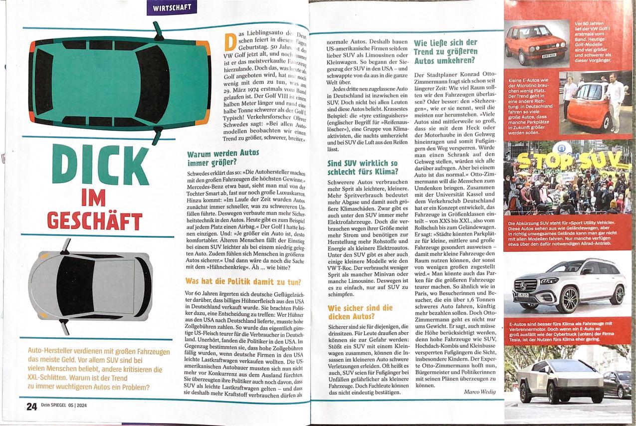 TochterSmart ab, fast nur noch große Luxuskarren. Mehr Spritverbrauch bedeutetmit der Universität Kassel und Hinzu kommt: »Im Laufe der Zeit wurden Autos Abgase und damit auch grö- dem Verkehrsclub Deutschla zunächst immer schneller, was zu schwereren Un. ßere Klimaschäden. Zwar gibt es hat er ein Konzept entwickelt, das fällen führte. Deswegen verbaute man mehr Sicher. ch unter den SUV immer mehrFahrzeuge in Größenklassen ein