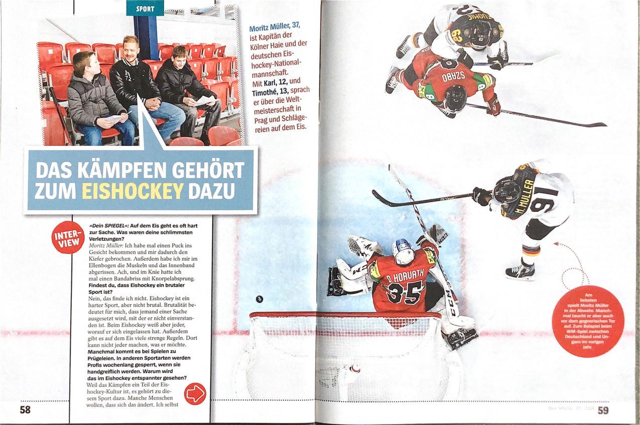»Dein SPIEGEL« Auf dem Eis geht es oft hart INTER- dCne. VVas Waren dein Cehlirmrmcta lerleu I* VIEW ef *halommen und mir dadurch Kiefer gebrochen. Außerdem habe ich mir im nbogen die Muskeln und das Innenband abgerissen. Ach, und im Knie hatte ich