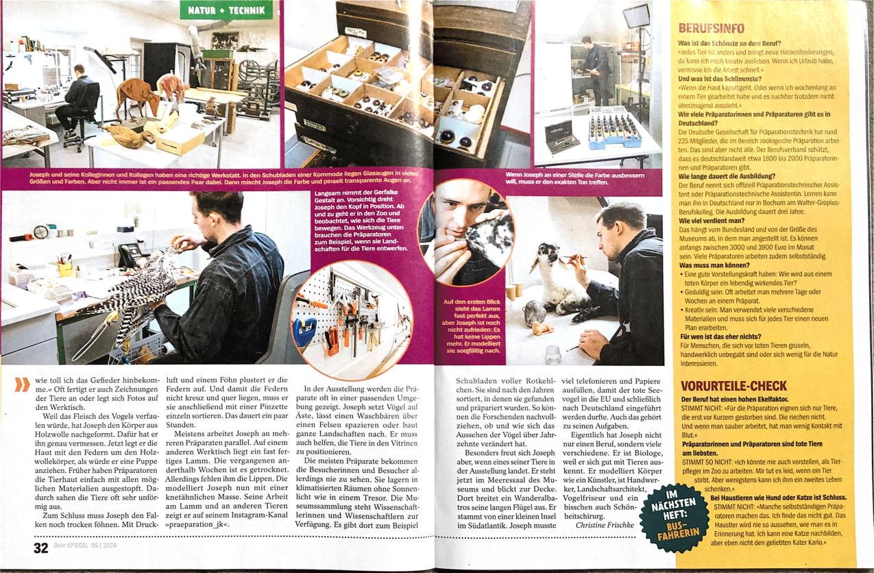 chen. Sie sind nach den Jahrenausfüllen, damit der tote See der Tiere an oder legt sich Fotos auf nicht kreuz und quer liegen, muss er parate oft in einer passenden Umge- sortiert, in denen sie gefundenvogel in die EU und schließlich Der Beruf hat einen hohen Ekelfakt den Werktisch. sie anschließend mit einer Pinzettebung gezeigt. Joseph setzt Vögel a ad präpariert wurden. So kön- nach Deutschland eingefüh MMl NICHl: # ur ale Pra alatIU1 igeu Vogels verfau- einzeln sortieren. Das dauert ein paar Äste, lässt einen Waschbären übe nen die Forschenden nachvoll- werden durfte. Auch das gehö erst Vor Kurzem gestoIDen Sina. Dle nechen icn len würde, hat Joseph den Körper aus Stunden. einen Felsen spazieren oder ba ziehen, ob und wie sich daszu seinen Aufgaber Und wenn man sauber arbeitet, hat man wenig Ke Holzwolle nachgeformt. Dafür hat er Meistens arbeitet Joseph an meh- ganze Landschaften nach. Er mus Aussehen der Vögel über Jahr-Eigentlich hat Joseph nicht ihn genau vermessen. Jetzt legt er die reren Präparaten parallel. Auf einemauch helfen, die Tiere in den Vitrine 1 einen Beruf, sondern viele Präparatorinnen und Präparatoren sind tote Tier Haut mit den Federn um den Holz- anderen Werktisch liegt ein fast fer- zu pos