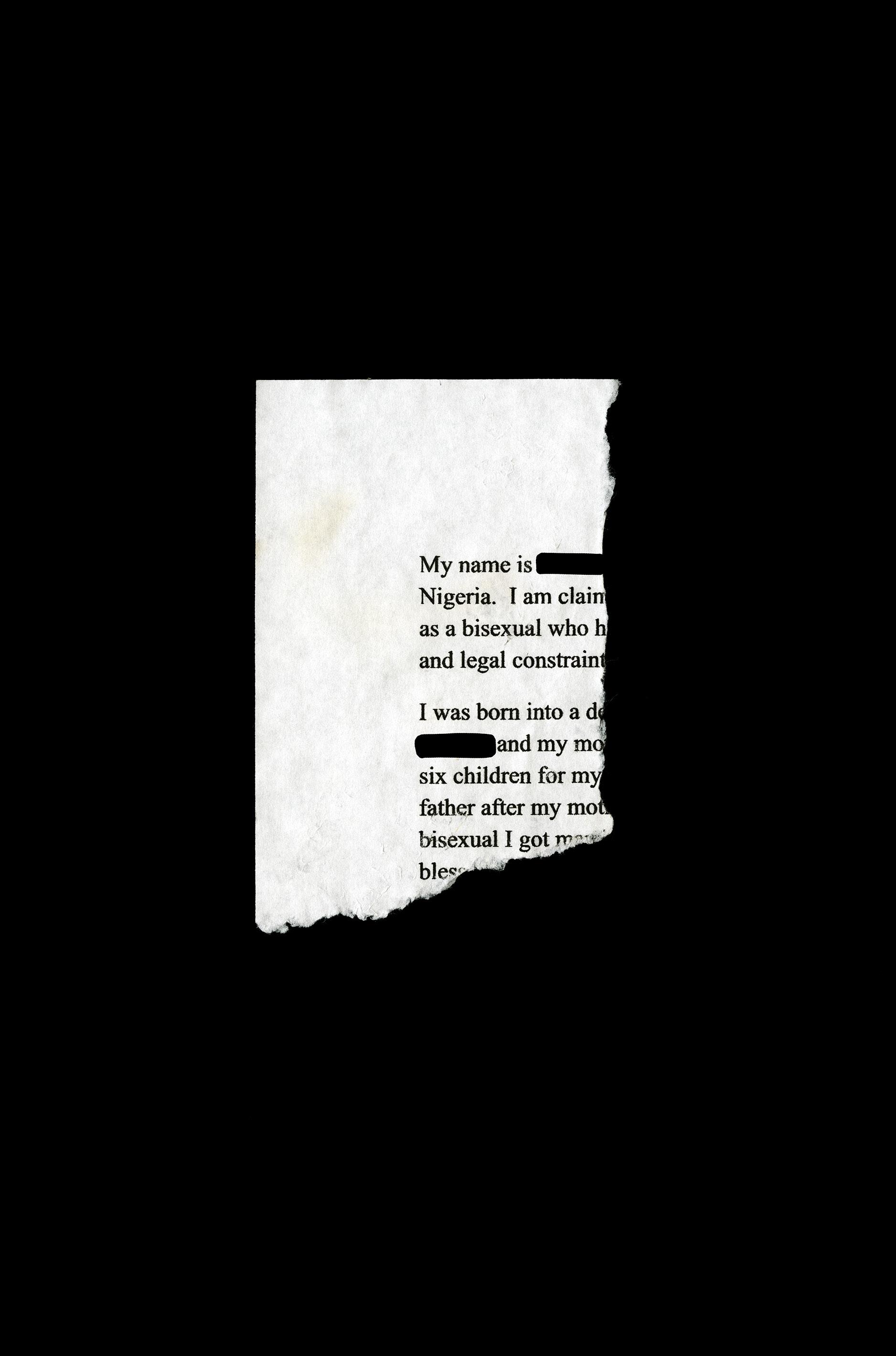 The videos were heartbreaking. Canada was the last option for the asylum seekers—neither their home countries nor the United States were safe or viable. From each video, I still-captured a frame and digitally produced a soft, white, pod-like shape over each seeker’s head. Even though their backs were to the camera, the pod nonetheless denies the viewer the ability to fully witness moments of profound vulnerability. And, for me, it pays homage to the asylum seeker’s journey.