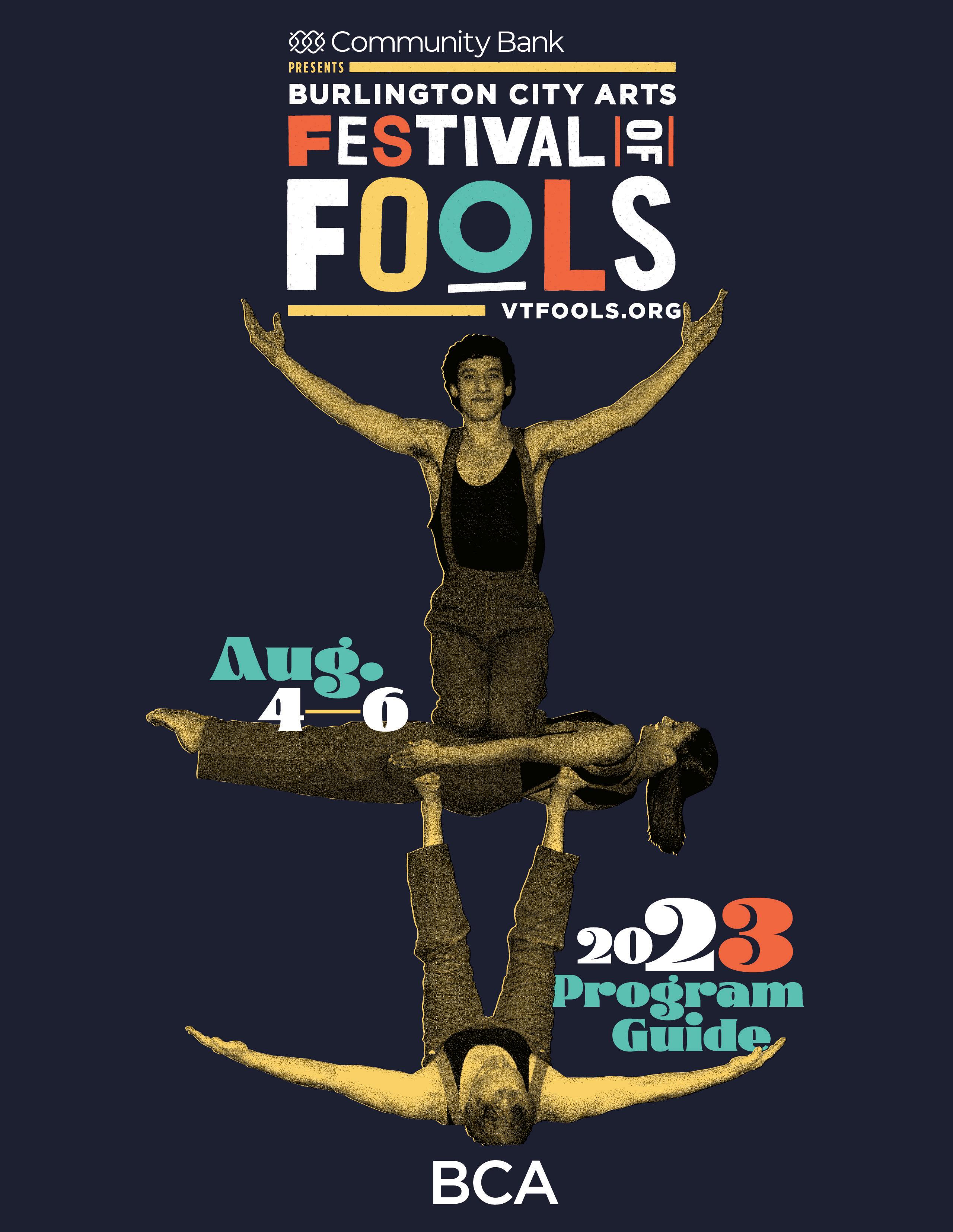 In the event of inclement weather, performances will be paused and/or canceled. When the weather clears, we will continue performances following the published schedules. Missed shows are generally not possible to re-schedule. In the event of a complete rain out, some performances may be moved into Contois Auditorium. Please visit vtfools.org, consult our BCA Events App, or visit our information tent for real-time updates during the festival.