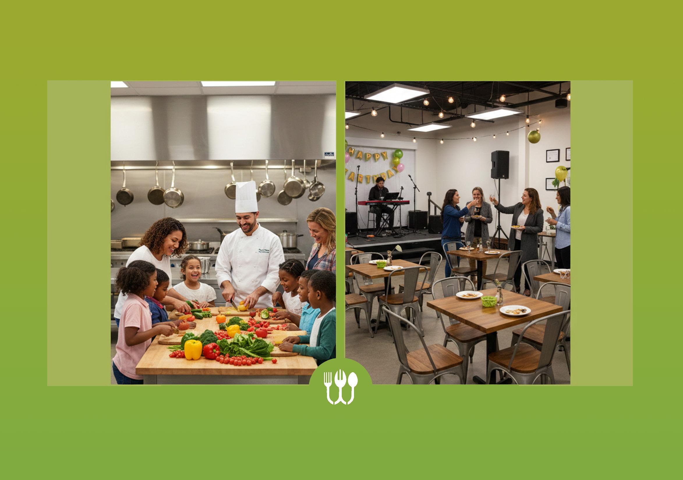 fitness, dancing, and social events. The facility also boasts a professional industrial kitchen designed to to stay active, connected, and well-nourished.