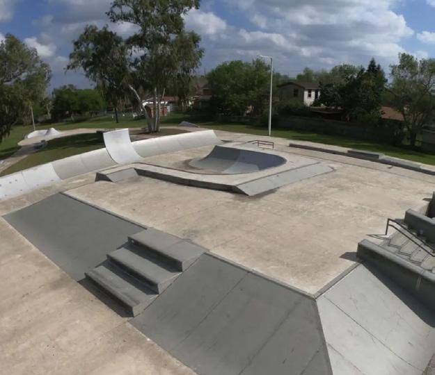 This public skatepark features a variety of obstacles for all skill levels, including a challenging skate bowl, smooth concrete ramps, rails, ledges, and stairs.Skate at your own risk. Bring your own skateboard and safety gear.