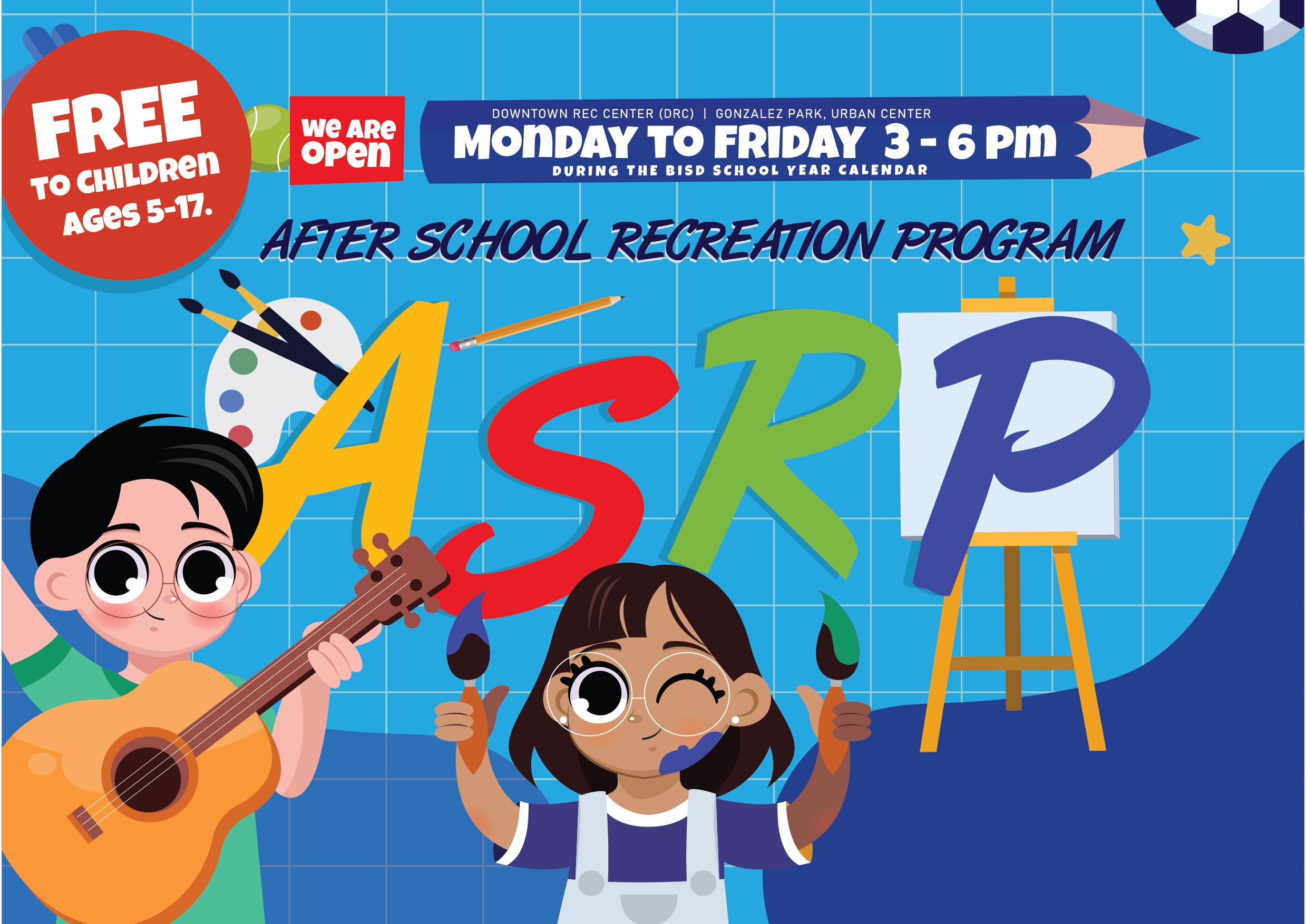 The After School Recreation Program (ASRP) provides a safe and engaging environment for children during the school year. The program offers supervised activities focused on recreation, arts and crafts, and fun. Meals are also provided.