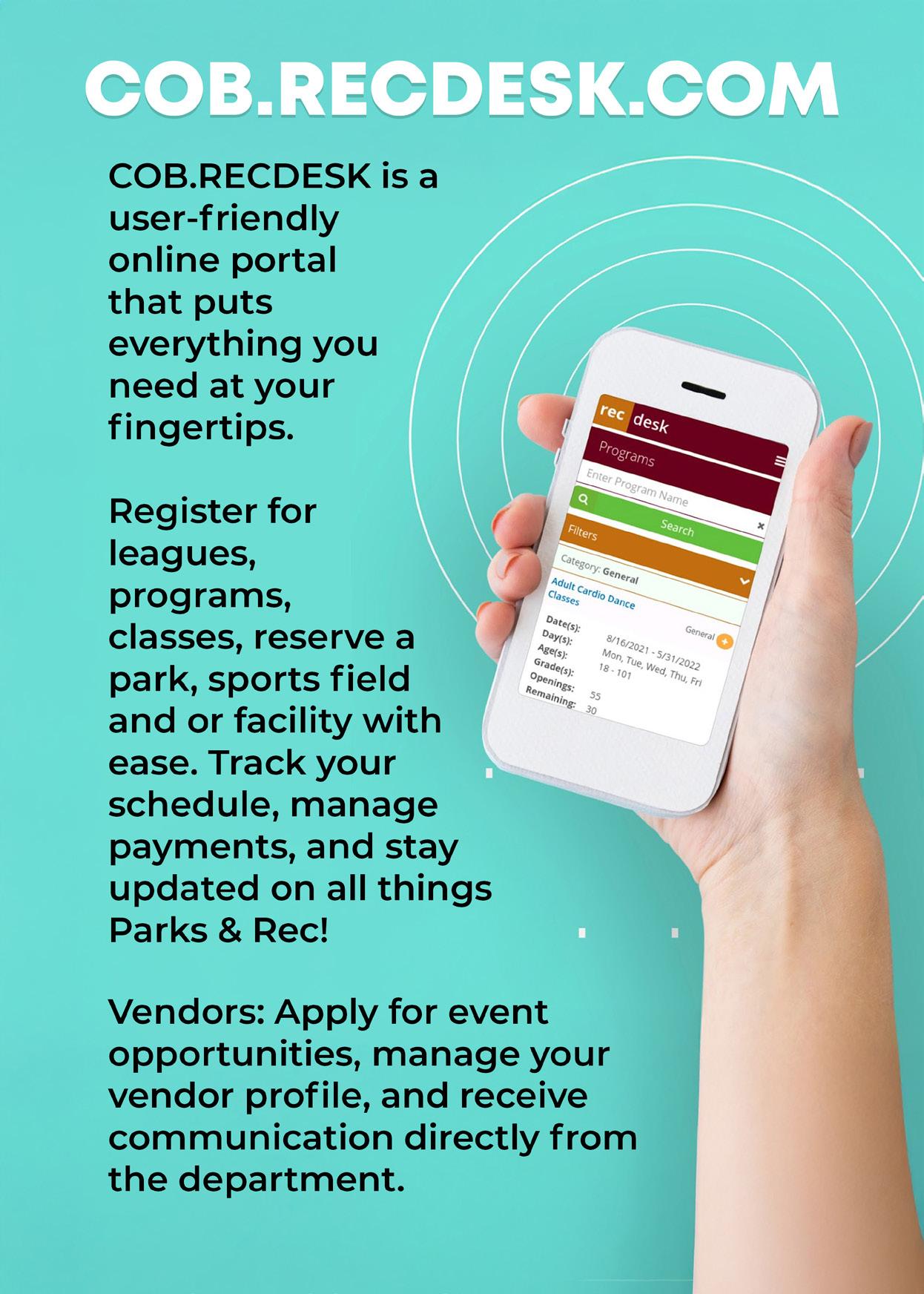 Cost: Free (MUST register at cob.recdesk.com)