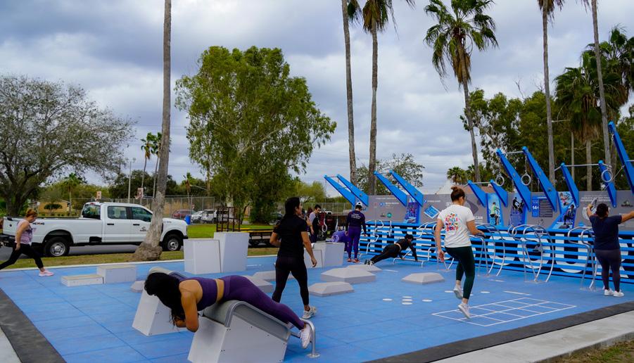 The city has reached a new milestone in public wellness with the official introduction of three stateof-the-art NFC Outdoor Fitness Court® Studios at Cabler Park (550 Burnett Rd.), Oliveira Park (104 El Paso Rd.), and the Brownsville Events Center (1 Events Ctr.). By moving high-quality equipment out of the traditional gym and into our most beloved green spaces, the Parks and Recreation Department (PARD) has created a free,